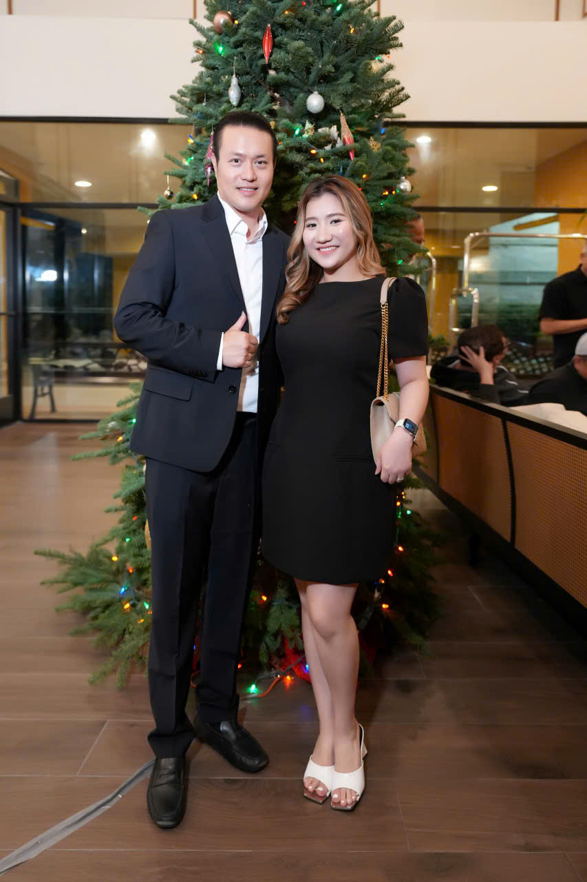 Vợ chồng Minh Chánh (hình trái) bên nhau hạnh phúc tại sự kiện. Hoa hậu doanh nhân người Việt thế giới Thùy Dương Phạm (hình phải) rực rỡ nổi bật trong trang phục áo dài của NTK Jacky Tài.